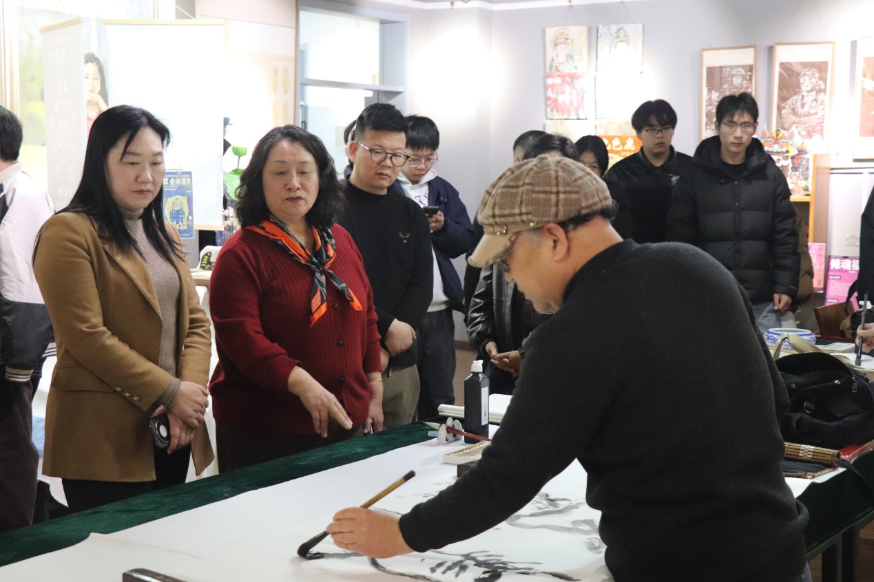 本次活动以书画为媒、以艺术迎春,旨在弘扬中华优秀传统文化,深化产教融合与校地协作,共同推进美育事业高质量发展。笔会现场,与会名家挥毫泼墨,即兴创作。作品或描绘太行巍峨、溪流潺潺,或展现藤花烂漫、意气昂扬,一幅幅笔墨精湛、意境深远的书画佳作跃然纸上,充分展现了艺术家们深厚的艺术造诣与对美育事业的真诚关怀。活动中,艺术家们将其现场创作的书画作品捐赠予英国365集团,用于教学研究与馆藏陈列。